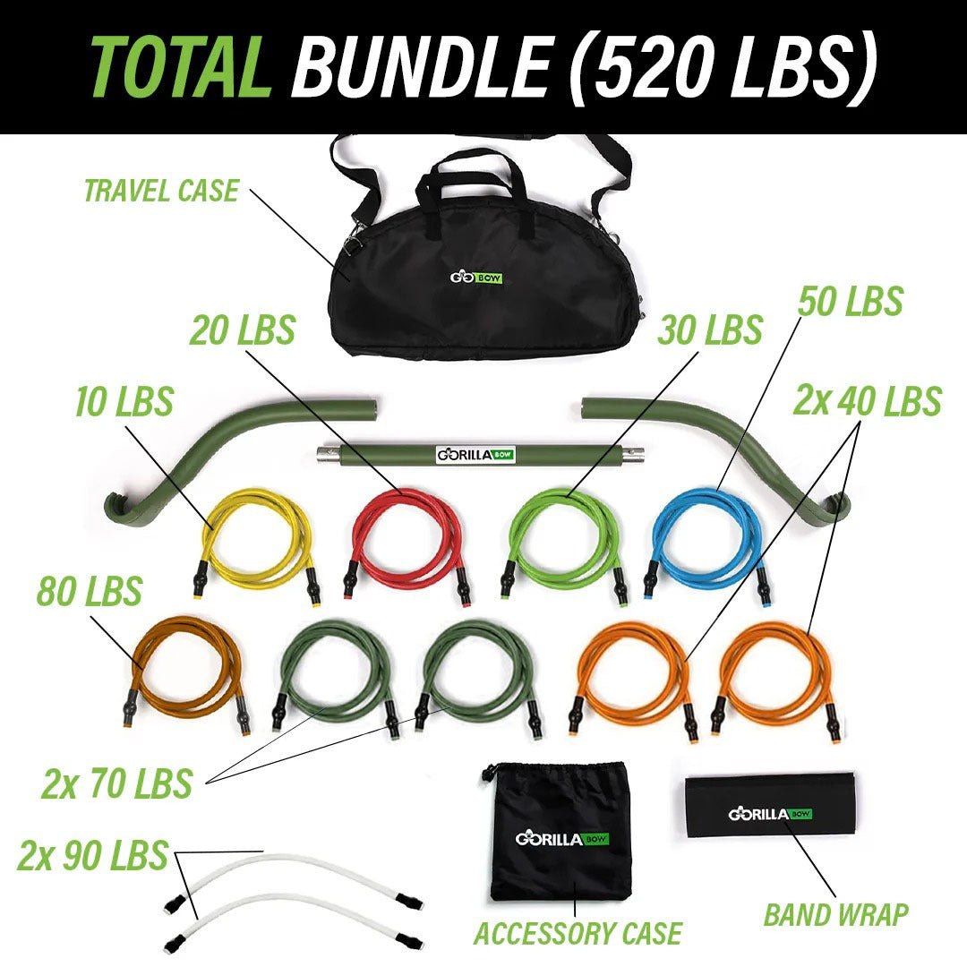 The Gorilla Bow only weighs 6lbs and can easily be stored in a travel bag (included in the total bundle!) Workout from anywhere, anytime.